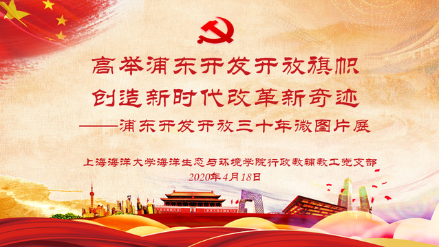 4月18日至23日,海洋生态与环境学院行政教辅教工党支部以“高举浦东开发开放旗帜,创造新时代改革新奇迹—浦东开发开放三十年微图片展”为主要形式开展了主题党日活动。微图片展以纪年形式反映了在党中央的坚强领导下,上海市贯彻“开发浦东、振兴上海、服务全国、面向世界”的战略意图,敢闯敢试,先行先试,坚定不移深化改革开放,与时俱进行创新探索,取得一个个浦东开发开放重大成果,谱写三十年发展的光辉历程。