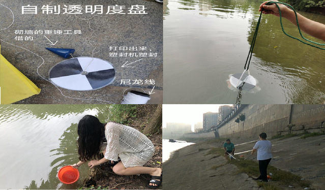 动手实践,实习效果显著。在实习过程中,同学们发挥聪明才智,利用塑料盖、铁皮、纸板、重锤、尼龙绳等常见易得的材料,DIY制作了各式各样的透明度盘,展示了实践创造精神。同学们和家人一起来到江边湖畔,采集水样、测量水体透明度和流速、辨识植物、拾取螺贝、捕捉鱼虾,完美地体验了一把不一样的实习过程,留下了许多珍贵的照片和视频资料。