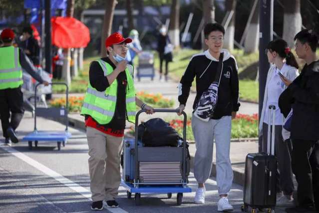 今年新生报到,根据学校疫情防控要求,家长无法陪同进校,虽是刚刚踏入校园,但新生们进校报到井然有序,展现出了独立自主的良好风貌。