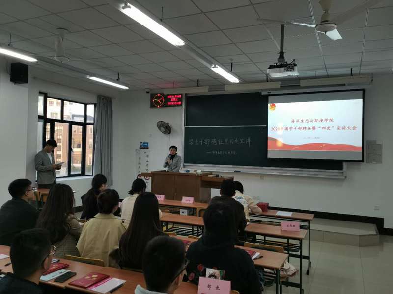 2020年11月4日下午,上海海洋大学海洋生态与环境学院在2310教室举行了新一届团学干部聘任暨“四史”学习教育宣讲活动,党委副书记黄永莲、团委书记方晨光、研究生辅导员徐帆以及全体新一届团学干部和团支部书记等学生干部60余人参加此次活动。