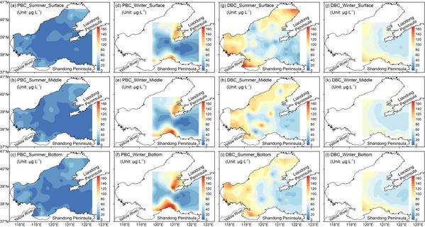 图1 渤黄海颗粒态和溶解态BC的时空变化(Fang et al., 2020, ES&T)