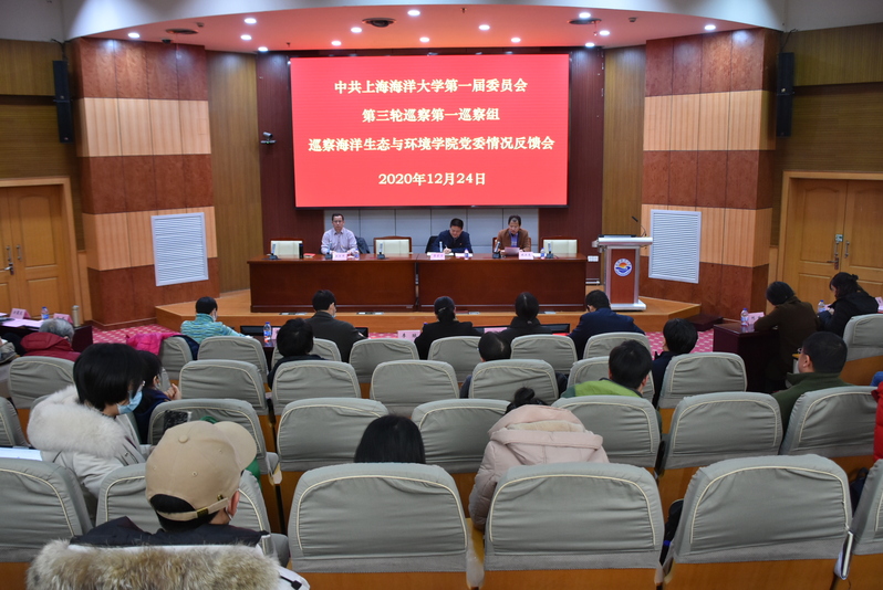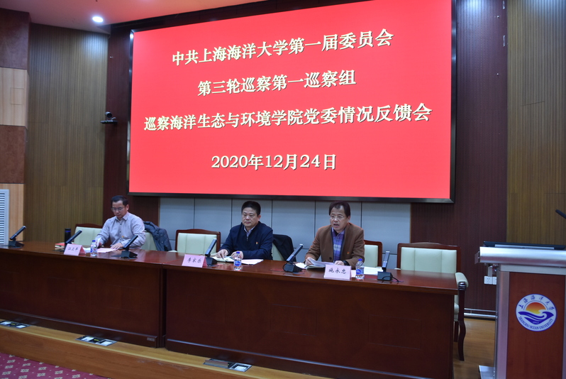 12月24日,中共上海海洋大学第一届委员会第三轮巡察第一巡察组巡察海洋生态与环境学院党委情况反馈会议在行政楼137会议室召开,上海海洋大学巡察工作领导小组成员李家乐、第一巡察组组长江卫平及全体组员、海洋生态与环境学院党委班子和教师代表参会。会议由海洋生态与环境学院党委书记施永忠主持。
