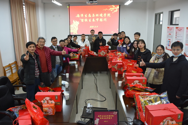 2月11日是中国农历大年三十,依照传统,这天是家人团聚的日子。为响应“就地过年”的疫情防控倡议,追赶2020年落下的学业进度,海洋生态与环境学院17名研究生选择了留校过年。当天下午,学院院长高郭平、副书记黄永莲、副院长林军,导师代表章守宇、研究生辅导员徐帆和留校学生齐聚学院会议室,畅谈寒假生活,分享过年的喜悦。