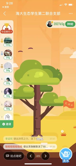 3月12日,支部成员在线上交流了活动感想。党支部书记徐帆表示,这次合种蚂蚁森林的活动充分调动了同志们参与植树的热情,希望支部能把这项活动持续下去,积少成多,争取每年都能种一棵树。入党积极分子李迎东是本次活动贡献“能量”最多的同志,一共浇水24060g。李迎东表示,以蚂蚁森林种树的形式积极践行“绿水青山就是金山银山”的生态环保理念,为我们生活的家园做一些力所能及的事情,每一位支部成员都很有成就感。