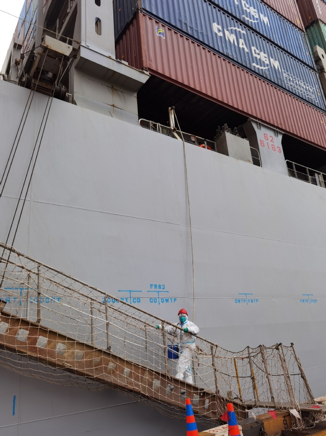 8月疫情好转时,王琼又投身于科研第一线的奋战中。围绕国家海洋战略和上海国际航运中心的需求,她致力于船舶压载水相关领域的科学研究,因此少不了与船舶打交道。远洋船舶吨位都很大,有几百米长,有时候很难靠港。为了登上大轮,她往往要从岸上乘着小船逆着风浪,花上一、两个小时开往大型船只的锚地。在靠近目标船舶后,她冒着随时会被海风吹翻的危险,奋勇当先地爬上数十米高的货轮悬梯,一点都不怵。如此平凡而伟大的一名教师,王琼给实验室师生们树立起了挺拔的标杆。很多同事一说起王琼,就竖起了大拇指。研究生们也都以她为榜样,努力学习,甘于奉献。