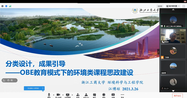 为推进学校课程思政建设,提升教师开展课程思政建设的意识和能力,确保立德树人的成效,3月26日,海洋生态与环境学院邀请浙江工商大学江博琼教授在线举行“分类设计,成果引导—OBE教育模式下的课程思政建设”的专题讲座。讲座由海洋生态与环境学院教学院长李娟英主持。