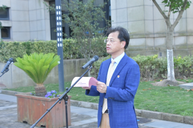 院长高郭平发表致辞并介绍本次学院活动月总体安排。他表示,我们将深化党史学习教育,以历史思维和眼光,从党史中汲取智慧和力量,不断提高政治站位和思想认识,厚植家国情怀和使命担当,加深对生态文明建设的理解,践行“绿水青山就是金山银山”的生态理念,服务国家生态文明建设、长三角一体化生态环境建设、乡村振兴、美丽海湾及美丽中国建设。学院将结合工作实际,举办首届生态文化节,开展“三全育人实践教育基地挂牌”“生态环境保理念倡导”“生态文明科研成果展示”“暑期社会实践团出征”“生态文化进校园”等一系列活动。他表示,希望将党史学习教育融入到生态文化节各项活动中去,将精气神转化为干事创业的拼搏劲,稳步提升学科建设和人才培养质量,提升学院科技服务能力和社会影响力,打响学院生态环境品牌。