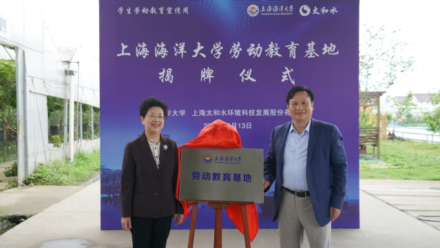 5月13日下午,上海海洋大学劳动教育基地在上海太和水环境科技发展股份有限公司金山枫泾基地揭牌。校党委副书记、副校长宋敏娟,校党委常委、宣传部部长郑卫东,上海太和水环境科技发展股份有限公司董事长何文辉、总裁徐筱娜等参加揭牌仪式。