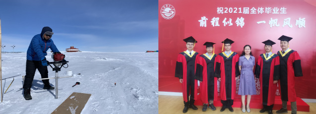 2016级环境科学与工程专业硕士研究生王丹赫南极采样(左) 上海市大学生创新项目负责人2005级环境工程专业本科生张何欢(右)