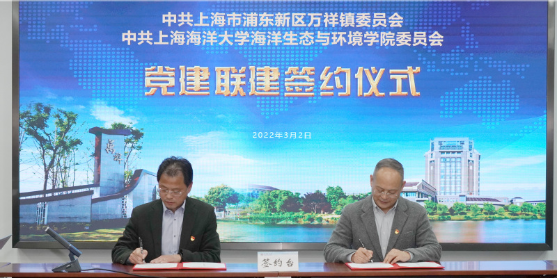 3月2日,上海海洋大学海洋生态与环境学院党委与浦东新区万祥镇党委党建联建协议签订仪式在上海海洋大学举行。万祥镇党委书记程渡江,党委副书记、镇长杨光磊,人大主席张顺龙,党委副书记周志军,党委委员严春峰等镇班子成员,海洋生态与环境学院党委书记施永忠,党委副书记黄永莲,党委委员、副院长林军,副院长李娟英等学院领导,以及学院教师代表出席了仪式。仪式由黄永莲主持。