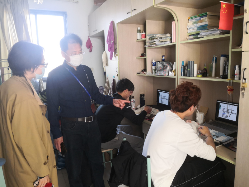 一网牵两端,停课不停学。学院领导高度重视线上教学开展情况。线上教学开课当日,学院党委书记施永忠走访学生寝室,了解线上授课情况,询问了解学生们线上听课的体验。他对线上教学工作提出四点要求:一是在线上教学组织开展的同时,要稳抓教学过程和质量管理,把线上教学作为一种常态化教学手段,持续发力,不断提高教师的线上教学水平;二是落实“以学生为本”的教学中心地位,针对线上学习条件受限的学生,要及时做出预案,调整教学安排,不让一个学生掉队;三是要对线上授课情况及时进行总结,好的经验要宣传,好的建议要采纳,好的教师要树典型,好的资源要共享,确保今后线上教学能够更好地进行;四是在教务处与教师发展中心加强技术支持与保障下,任课教师和辅导员要主动关心学生,广泛吸收并及时解决师生们反馈的线上教学遇到的问题。