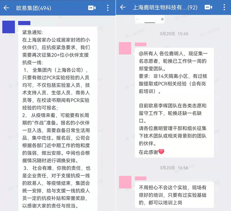 当前上海疫情防控形势复杂严峻,随着大范围核酸筛查工作的开展,每天数以百万计的核酸样本被送至各个医学检测机构等待检测。一时之间,核酸检测人员成了最稀缺的“资源”。为缓解核酸检测压力,急需调配有操作经验的实验人员支援一线做核酸抽提和PCR检测工作。