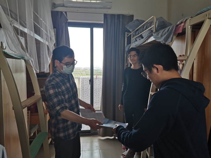 院长高郭平院首先介绍了在校师生的情况,进一步强调了校内校外疫情防控政策,鼓励各位党员深入基层,积极参与社区防控。高郭平于3月28日进校,担任学院B班班长,经常走访学生寝室,利用给学生送早餐的机会与学生交流,将学院编辑的《考研宝典》送到学生们的手中。他说,学院有在校学生600多名,在校教师仅13人,工作强度比较大,每天忙碌到深夜。他要求在校教师在保质保量完成科研和教学工作的同时,还要关心师生的生活和心理状态。校外老师纷纷表示要做好本职工作,减轻在校教师压力。