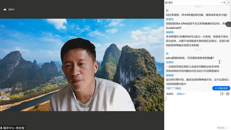 4月30日,国家海洋环境监测中心李宏俊研究员应邀为上海海洋大学师生做了《海洋环境DNA监测与分析》为主题的学术报告,此次线上报告由生态工程系副主任张建恒副教授主持,校内外近百名师生在线聆听了报告。