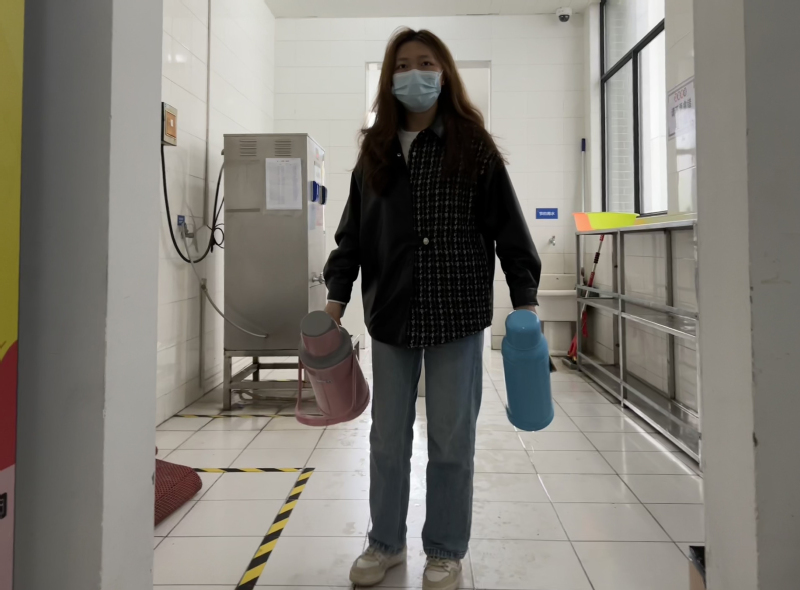19级本科生辅导员高祯聆自封控以来担任第十五小区B014楼长,主要管理四层和五层共156名学生,其中有三分之二是毕业班学生。她除了每天按时完成组织抗原检测、核酸采样、送餐食物资等工作以外,还密切关注每一位学生的情况,做学生的知心人,帮助他们保持积极良好的心态;做学生的热心人,帮助他们解决各种各样的问题;做学生的引路人,帮助他们求职就业。高祯聆说:“突如其来的疫情和封控生活对我们每个人来说都是巨大的挑战。封控期间和同学们一起度过的一个个难忘的日夜,尽管有紧张,有疲累,但更多的是感动。在这场没有硝烟的战斗中,每个人都是战士,无论是进驻老师、宿管阿姨还是同学们,所有人都积极乐观,相互支持,为最终的胜利而战!”