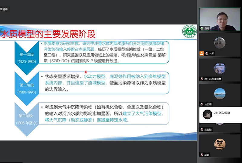 5月6日,国家海洋环境监测中心赵骞副研究员应邀为上海海洋大学师生做了《海洋水质模型研究进展与管理需求》为主题的学术报告,此次线上报告由林军副教授主持,吸引了校内外百余名师生在线聆听。