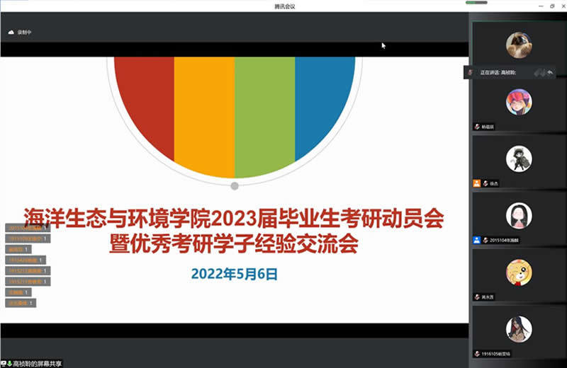 为进一步提升学院人才培养质量,充分调动学生考研积极性,帮助学生认清当前考研新形势,树立考研自信心,从而扎实推进本科生考研指导工作,上海海洋大学海洋生态与环境学院于5月6日召开2023届考研动员会暨优秀考研学子经验交流会,学院党委副书记、院长高郭平,党委副书记黄永莲,辅导员高祯聆、段轲,2019级课程导师以及2018级优秀考研学生代表作为主讲嘉宾出席会议,2019级和2020级全体学生参加。