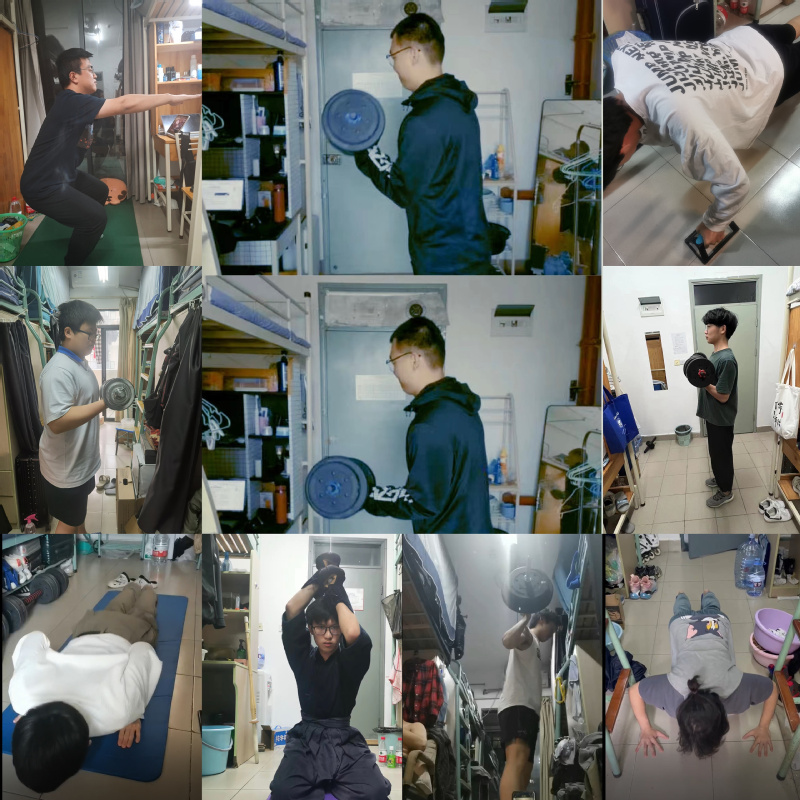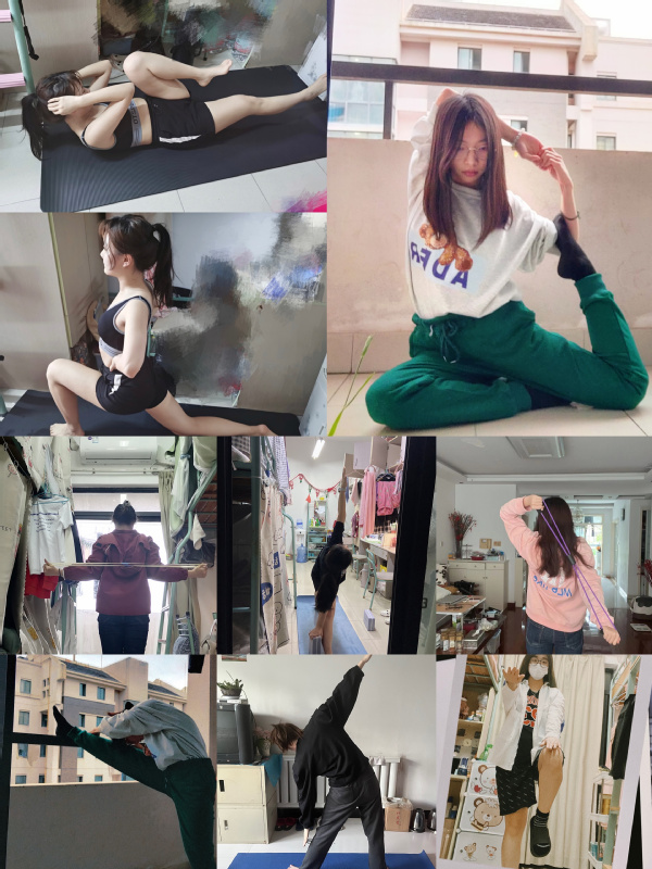 生命在于运动,青春因运动而精彩。体育实践类党课上,学生们充分利用现有运动条件,通过仰卧起坐、健美操等方式进行体育锻炼。从活动开始至今已陆续收到许多学生参与运动的打卡视频和照片,从中感受到大家在封闭管理下依然饱满的战斗热情、健康积极的心态和青春洋溢的力量。一位参加体育实践党课的学生说:“在特殊时期,每天对着书本、手机、电脑,眼睛很疲劳,体育运动能让我感到放松、减缓疲劳。每次运动完成后,我的心情也愉悦了很多。”