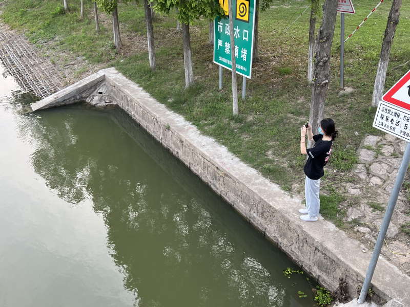 在资料调研基础上,实践团队制定了调研计划,7月26日以上海海洋大学为起点,16号线临港大道地铁站为终点,绕行上海滴水湖对水系生态健康状况开展实地调研。团队成员记录沿途河道地理位置,拍摄河道水系生态状况照片,对上海临港新片区三年计划的实施效果进行验证。同时实地走访附近居民,调查其对水系生态健康状况、三年计划实施情况、河道水生态改善情况的了解程度,宣传水生态环境保护知识和政策。