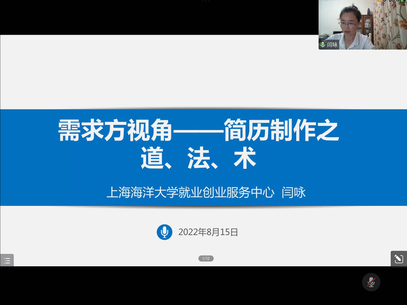 为进一步提升学生就业竞争力,为求职打下良好基础,8月15日,上海海洋大学海洋生态与环境学院在腾讯会议举办讲座,特邀专业生涯咨询师、上海高校毕业生就业工作优秀工作者闫咏作题为“需求方视角——简历制作之道、法、术”的报告,指导即将步入职场的学生们制作简历。讲座由学院党委副书记黄永莲主持,毕业班辅导员及2023届本科生、研究生毕业班学生参加。