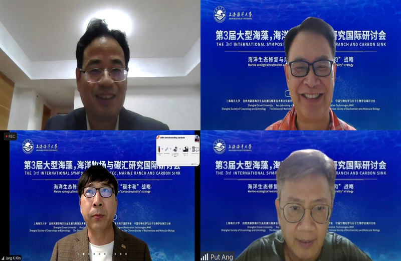气候变化是当今面临的全球性重大挑战,应对气候变化是国际共识,也是我国践行“人类命运共同体”理念、积极参与全球治理的历史性机遇。为了更好地落实国家“碳达峰、碳中和”战略、应对气候变化,保障可持续发展源动力,大力推进海洋生态修复与海洋牧场工程建设以实现海洋负排放等战略,上海海洋大学联合自然资源部海洋生态监测与修复技术重点实验室、江苏海洋大学、上海市海洋湖沼学会、中国生物化学与分子生物学会海洋分会等单位举办的“第3届大型海藻海洋牧场与碳汇国际研讨会”于11月12日以线上会议方式举行。来自中国、澳大利亚、韩国等国家及中国香港地区的专家、学者和研究生在线参会。上海海洋大学副校长江敏代表主办单位致辞,上海海洋大学何培民教授主持大会。