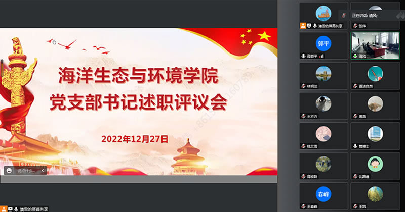 为贯彻落实党的二十大精神,切实提升基层党建工作质量,按照学校工作部署要求,12月27日,上海海洋大学海洋生态与环境学院党委召开2022年度党支部书记述职评议会,党委委员、党支部书记和支委出席。会议由学院党委书记施永忠主持。