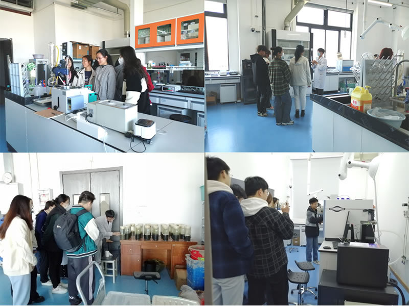 支部党员分两组带领50多名学生参观了海洋科技大楼实验室。学生们在六楼水生态环境中心水质分析、生物分析、分子生物学、微生物、实验生态等实验室驻足停留,袁林深入浅出地介绍了课题组研究方向和科研创新成果,启发学生思考科学问题,激发学生创新动力。王春峰带领学生来到七楼环境材料与污染控制技术、功能膜材料与水处理技术、新污染物分析、有机全成分分析等科研实验室,带领大家参观质谱仪、原子吸收分光光度计、气相色谱仪、傅里叶红外等仪器设备。支部邀请有科研经验的研究生向学生们介绍了所在科研团队的研究方向和科研成果,欢迎同学参加到科学研究中来。学生们认真聆听了实验室功能讲解和仪器介绍,表现出极大的兴趣。