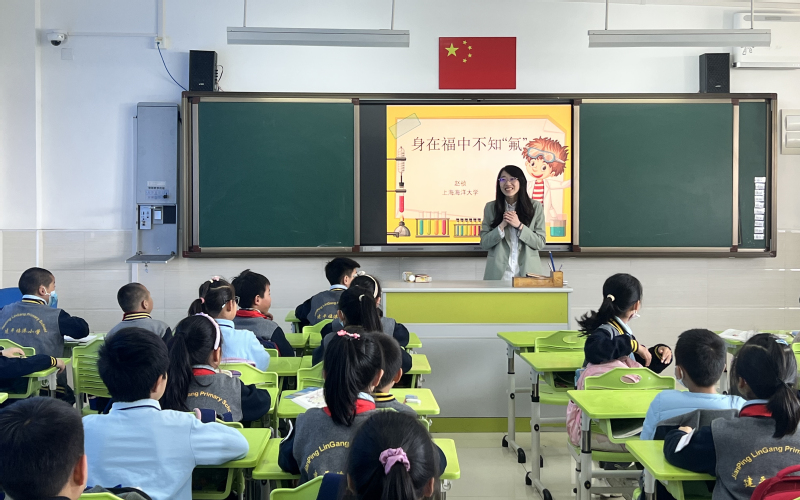 4月10日中午,上海海洋大学海洋生态与环境学院赵祯副研究员走进建平临港小学,为小朋友们带去一场生动的“滴水生态课堂”——身在福中不知“氟”,通过讲座普及全氟化合物健康危害和防范知识。