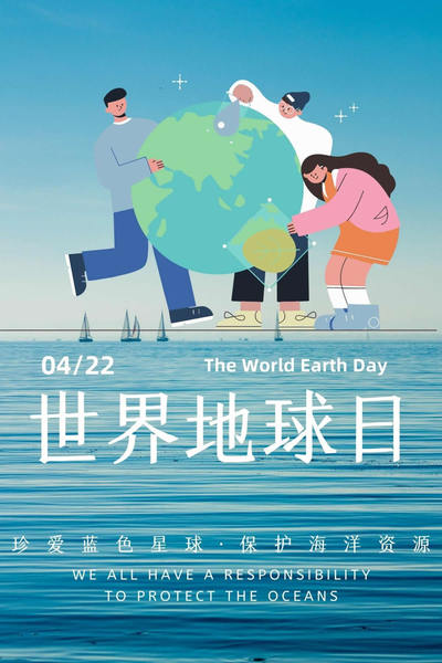 简介:海报醒目地标出此次世界地球日的主题。运用蓝色、绿色调寓意地球绿色的树木和蓝色的海洋,代表着人们珍爱地球,保护地球家园的成果。围绕此次主题提出“未来因你们而不同”,并使用中英文表达号召大家共同守护地球的期望。人物肤色各异,代表人类命运共同体联手共同保护地球家园。(设计团队:孙彦楠、潘旖轩、石小米、陈晗月、包羽菲)