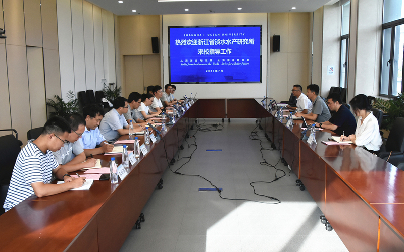 7月26日,浙江省淡水水产研究所党委书记、所长张海琪一行到上海海洋大学调研访问。学校研究生院副院长李娟英,海洋生态与环境学院党委委员、副院长张建恒,党委委员、实验室管理办公室主任王春峰,教师代表林田教授、林建伟教授、沈盎绿副教授等参加座谈会。