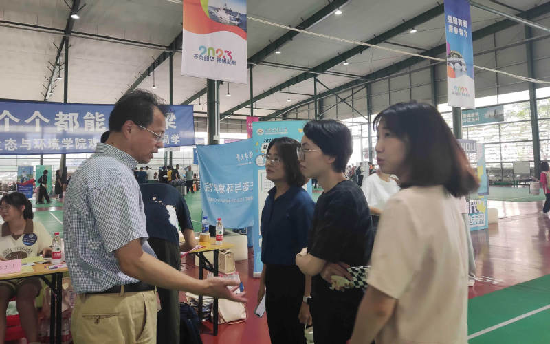 报到期间,学校党委书记王宏舟、校长万荣来到报道现场慰问了迎新工作人员和新生。学校党委副书记宋敏娟、学生处长周辉对学院宣传标语“生态环境专业强,个个都能成栋梁”和中国生态环境保护吉祥物“小山”“小水”的策划设计表示肯定,表扬学院在迎新中开展德育和生态文明宣传工作,并与大家亲切合影。学院党委书记施永忠、院长高郭平现场检查指导迎新工作,并到新生宿舍看望新生代表,并与新生和家长亲切交谈。
