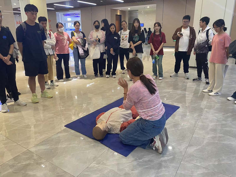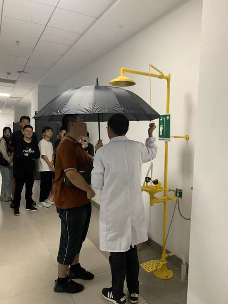 支部党员王春峰进行了新生实验室安全教育。他系统介绍了实验室规章制度、安全事故案例和突发事件处理处置方式,要求新生树牢安全意识,严格遵守规章制度,养成良好实验习惯。袁林、赵旭讲解了实验室喷淋装置使用方法、特种设备(压力容器)应急处置措施,希望学生掌握常见的实验室应急处理能力。在海洋科技大楼一楼大厅,新生观摩了校红十字协会急救部工作人员的急救示范演练,学习心肺复苏、伤口包扎等急救知识和技能。