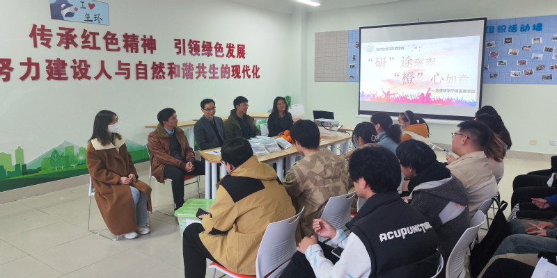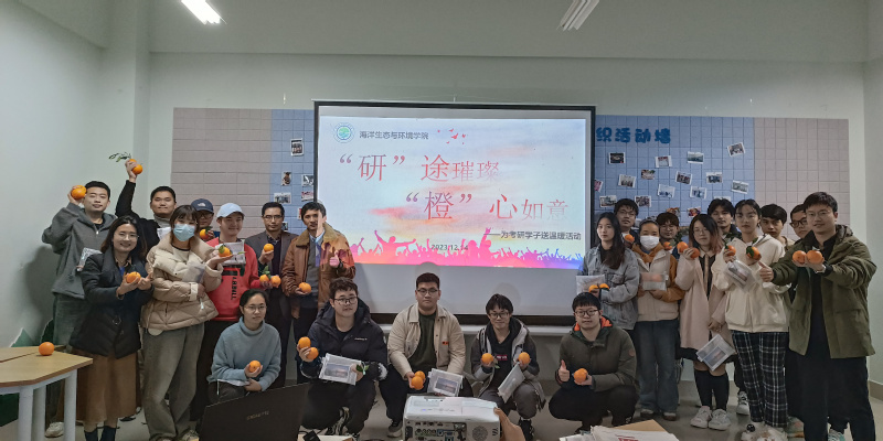 12月14日,上海海洋大学海洋生态与环境学院在第三小区活动室举办 “‘研’途璀璨,‘橙’心如意”为考研学子送温暖活动。院长高郭平,副院长林军、张建恒,党委专职学生委员王方方,辅导员段轲以及学院考研学生代表参加了本次活动。