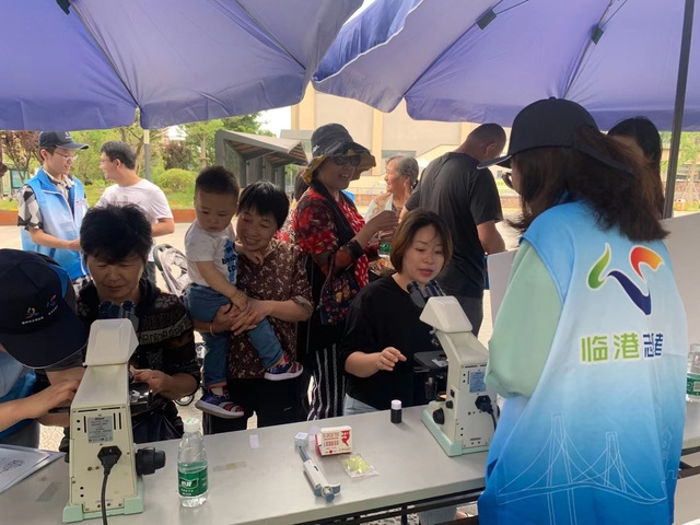 践行绿色发展理念,推进生态文明实践。海洋生态与环境学院联合临港新片区管委会生态处、申港社区滴水湖馨苑一居委、生态中心、兴港集团,开展了水务海洋进社区宣传活动,宣讲水质安全、节约用水和海洋环境保护知识。活动中,学院志愿者们向社区居民科普海洋环保和水资源知识,指导居民用显微镜观察自来水与河水,分辨水质差别,提高居民节约用水的意识。临港供排水公司的志愿者向居民发放节约用水宣传册,为居民解答自来水水质、用水方面的问题。活动共有24余名志愿者参与宣传,100余名社区居民参加活动,发放宣传册100余份。南汇新城镇芦潮港社区依托船舶与海洋工程特种装备和动力系统国家工程研究中心的船舶压载水检测试验室科技资源优势,围绕 “关心海洋安全,共同守护蔚蓝家园”主题,共同打造了系列海洋主题科普教育活动。结合专业科普讲座、科普视频、参观、科学实验体验、手工大课堂、知识竞赛、情景剧等形式,开展了近50场丰富的科普活动,引导公众关注海洋生态安全,了解、支持并参与海洋生态保护,提升青少年科学探究能力等核心素养,营造知海洋、爱海洋的良好氛围。