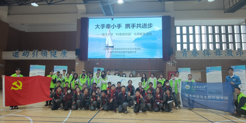 4月23日,由上海海洋大学海洋科学与生态环境学院和上海市浦东新区建平临港中学共同开展的党团共建活动——“科普进校园”志愿服务在建平临港中学举行。此次活动由学院学生发展中心组织,来自学院学生党支部、团支部、海young科普社等30余名大学生志愿者以及建平临港中学300余名中学生参加。