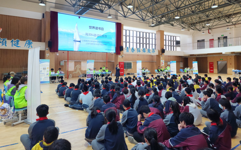 首先举行的海洋科普志愿服务暨世界读书日活动启动仪式上,建平临港中学老师代表学校对海大师生的到来表示热烈欢迎,并介绍活动安排和活动意义。来自海科学院研究生第四党支部的学生党员志愿者向中学生们推荐五本海洋类与生态环境类书籍。在筛选书籍的过程中,志愿者不但考虑不同年级、不同年龄学生的理解力,还考虑相关电影和纪录片延伸学习,以帮助中学生更好地理解相关知识。