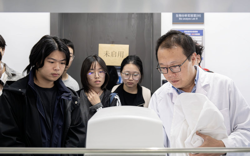 科创启蒙环节,支部党员化身“科技翻译官”,以“科创案例分享”形式讲述教师团队攻坚克难取得科研成果的奋斗历程,传递“敢想敢为、追求卓越”的科研精神。他们带领新生参观学院科教平台,用通俗语言解析专业理论,详细介绍连续流动营养盐分析仪、原子吸收分光光度计、色谱质谱联用仪等大型仪器的功能与应用场景,邀请优秀研究生代表张婷分享科研经验,鼓励大家运用先进的科学仪器多出科创成果。