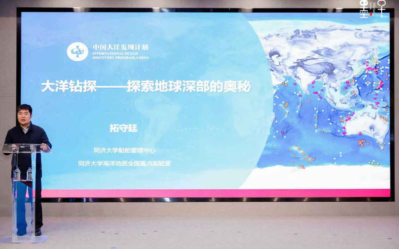 在特邀嘉宾分享环节,同济大学海洋与地球科学学院副院长,同济大学船舶管理中心主任拓守廷副教授从大洋钻探角度阐述了深海科学研究的重要意义。他指出,大洋钻探如同‘深海望远镜’,是目前地球深部取样的唯一手段。通过获取海底沉积物和岩石样品,科学家能够重建地球气候演变历史、探索海底资源形成机制,甚至研究极端环境下的生命形式,对地球科学的发展作出重要贡献。中国科学家在大洋钻探领域正从参与者逐步转变为重要贡献者和领导者,这一转变背后是我国深海科技整体实力的提升。