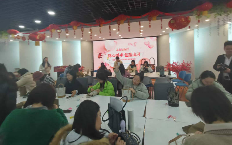 宋锦作为国家级非物质文化遗产,素有“锦绣之冠”的美誉,其精巧雅致、色泽温润,承载着千年丝绸文化的深厚底蕴。活动现场,专业指导老师为大家细致讲解了宋锦的历史源流、文化内涵,以及牛皮宋锦包的制作步骤与技巧。在老师的耐心指导下,大家纷纷动手尝试,从裁剪、缝制到装饰,每一个环节都凝聚着传统工艺匠心。大家认真操作、相互交流,在轻松愉快的氛围中完成了一件件精美的宋锦作品。