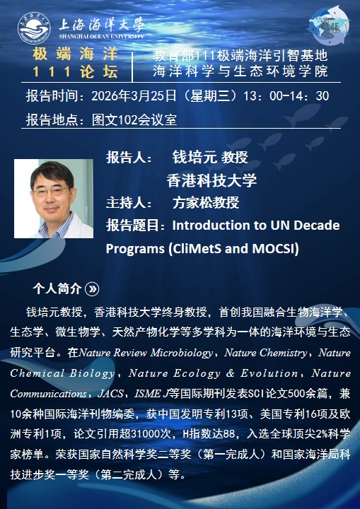 【讲座预告】Introduction to UN Decade Programs (CliMetS and MOCSI)