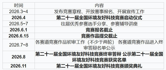 第二十一届全国环境友好科技竞赛日程安排如下: