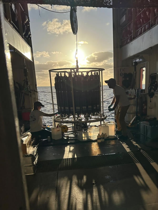 布雷耶博士后(左)与巴尔塔教授(右)正在从大西洋采集海水样本